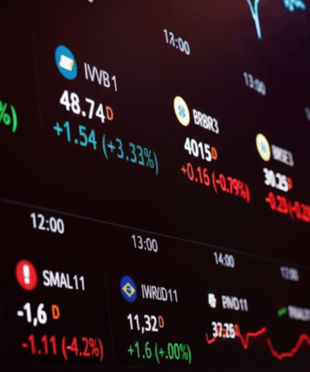 Painel de cotações na B3 em dia de recorde do Ibovespa, que superou 158 mil pontos.