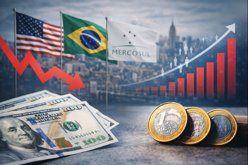 No Brasil, o anúncio do avanço do acordo comercial entre o Mercosul e a União Europeia ajudou a sustentar a valorização do real. O pacto prevê a eliminação gradual da maior parte das tarifas sobre exportações entre os blocos ao longo dos próximos anos, ampliando o acesso do Brasil a mercados desenvolvidos.