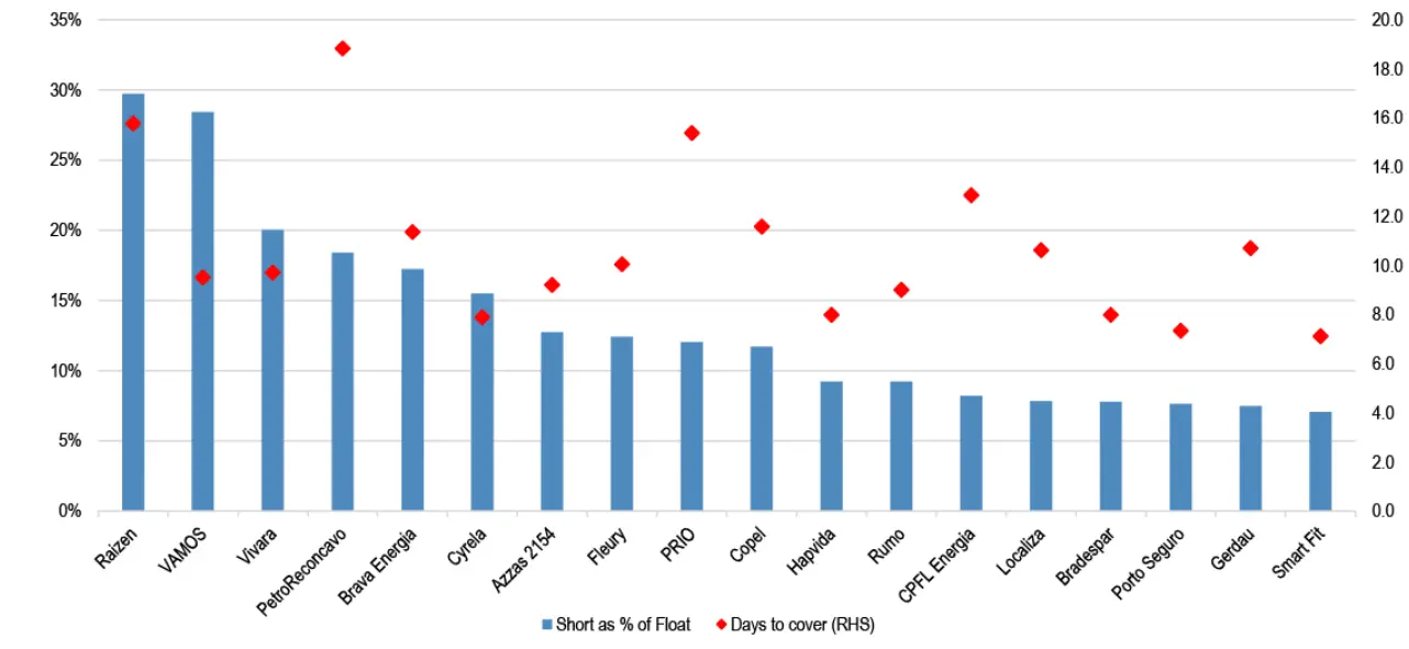 Mesmo após um forte desempenho no ano — alta de 27% no MSCI Brasil e 18% no Ibovespa —, o banco alerta que o otimismo não elimina o risco de volatilidade de curto prazo, especialmente em empresas com grande volume de apostas contra suas ações.