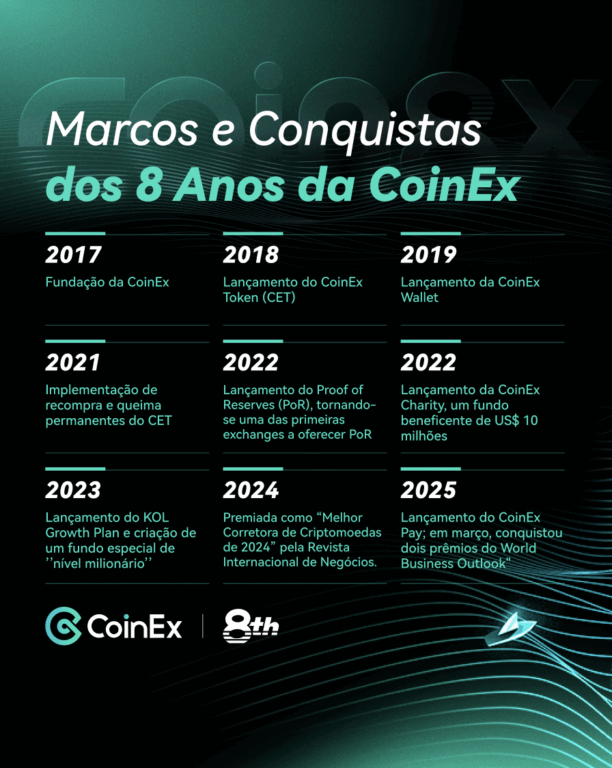 Completar oito anos neste setor em constante mudança é uma conquista que merece ser celebrada. Olhando para trás, para a jornada de oito anos da CoinEx, vemos mais do que uma linha do tempo; é uma história de resiliência, disciplina e compromisso com os usuários.