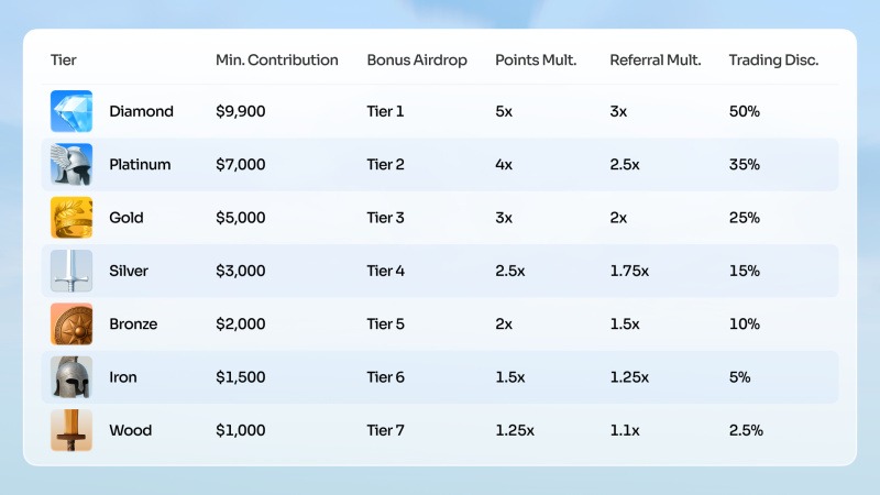 ● Multiplicador de pontos: ganho acelerado de pontos nas temporadas de airdrop 1 a 4 (Q1 a Q4 de 2026)
