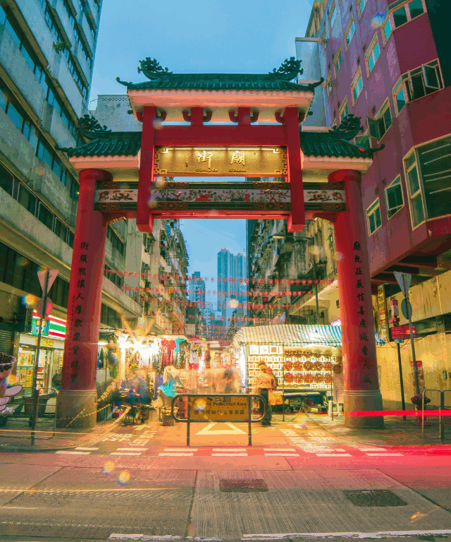 portal tradicional em Hong Kong representando o mercado chinês e investimentos globais.