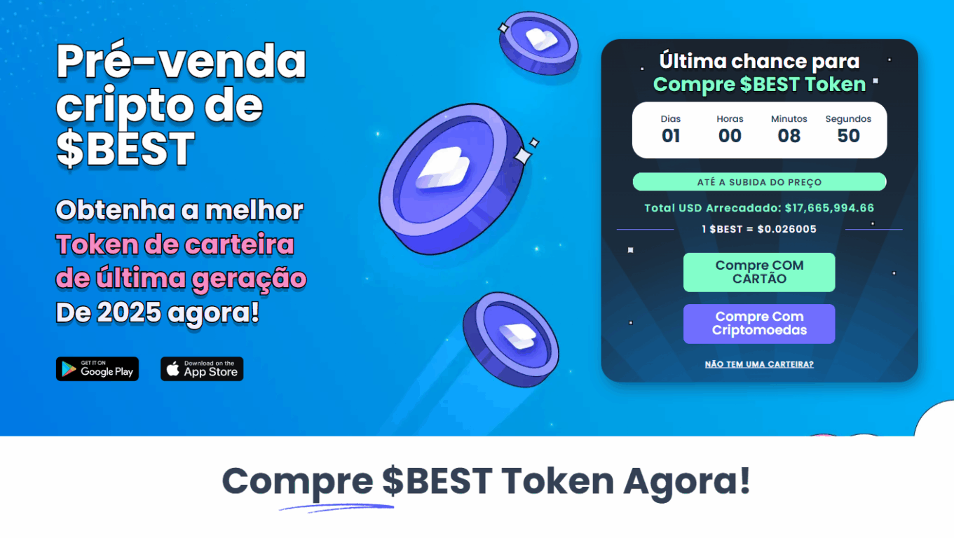 Enquanto isso, a venda do token segue ativa e entra em sua reta final. A ICO da Best Wallet já ultrapassou US$ 17,66 milhões arrecadados, com cada token atualmente cotado a US$ 0,026005.