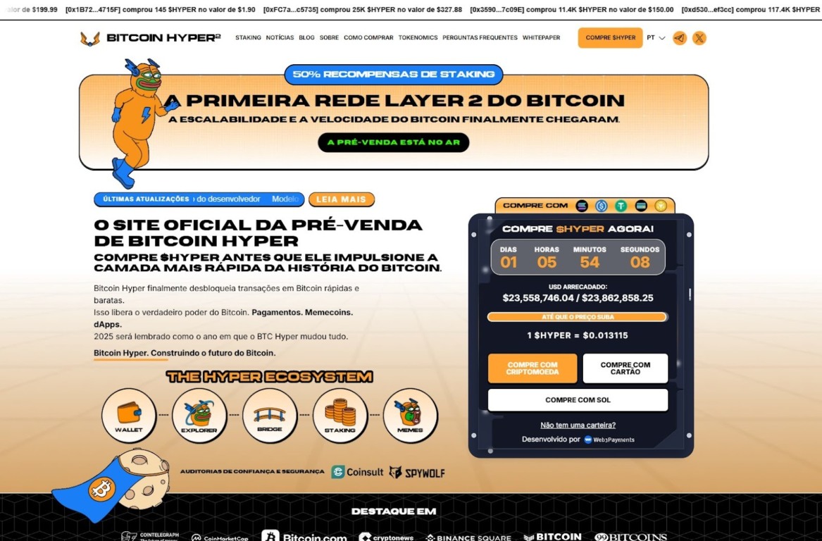 E é exatamente aí que o Bitcoin Hyper ($HYPER) se destaca. O projeto já arrecadou mais de US$ 23,5 milhões em sua pré-venda, com tokens vendidos a US$ 0,013115 e recompensas de staking de até 50% APY para os primeiros investidores.