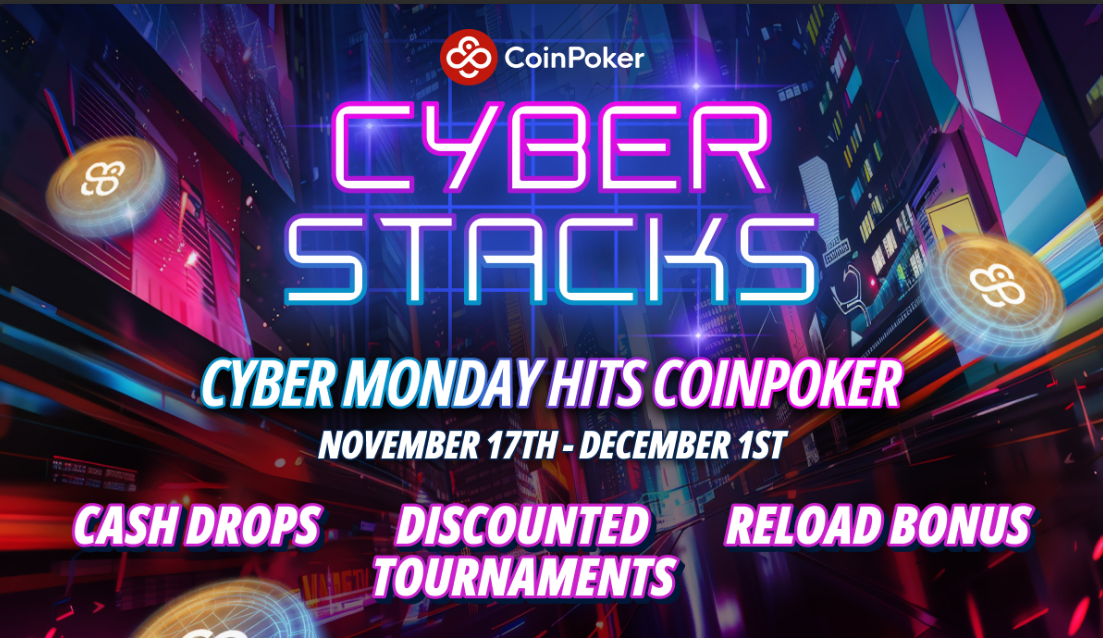 A campanha Cyber Stacks chega para celebrar a temporada de compras da Black Friday e Cyber Monday com uma maratona de poker e recompensas instantâneas. De 17 de novembro a 1º de dezembro, a CoinPoker distribuirá US$ 30.000 em cash drops, descontos em torneios CoinMasters e bônus de recarga de até US$ 200.