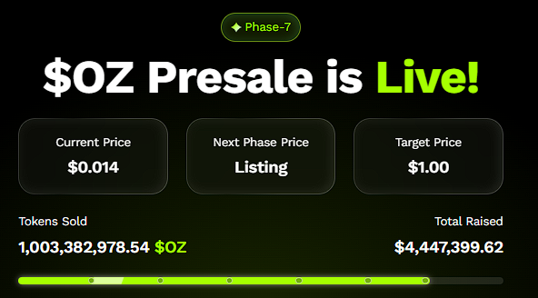 Atualmente no Estágio 5 de sua pré-venda, a apenas US$ 0,0014, a Ozak AI já arrecadou mais de US$ 4,4 milhões e vendeu 1 bilhão de tokens, atraindo traders, entusiastas de IA e investidores de venture capital. Com uma previsão de retorno potencial de 100× após o lançamento, a Ozak AI está rapidamente se tornando o caminho mais rápido para o status de milionário para os primeiros crentes no ciclo de 2025.