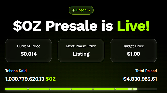 Enquanto a Solana constrói uma das trajetórias mais fortes entre os grandes players, o Ozak AI (OZ) surge como um projeto de destaque com uma curva de crescimento muito mais inclinada. Ozak AI não é apenas um token especulativo — ele funciona como uma camada de infraestrutura nativa de IA que oferece automação instantânea, tomada de decisão em tempo real e inteligência de alta velocidade em todo o ecossistema Web3.