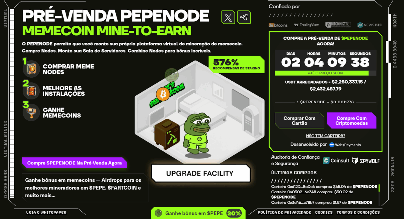 Se você está de olho em novas criptomoedas com potencial, esse é o momento de agir. Ainda em pré-venda, o PepeNode surge como uma das memecoins que vão explodir em 2025, reunindo todos os ingredientes de multiplicação: utilidade, comunidade, hype e escassez programada.