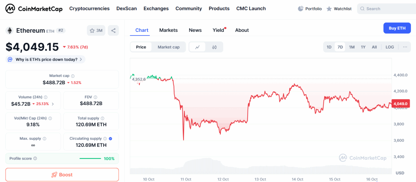 A cotação do ETH recuou 3%, ficando perto dos US$ 3.960. Mas enquanto o varejo entra em pânico, os institucionais estão comprando pesado.