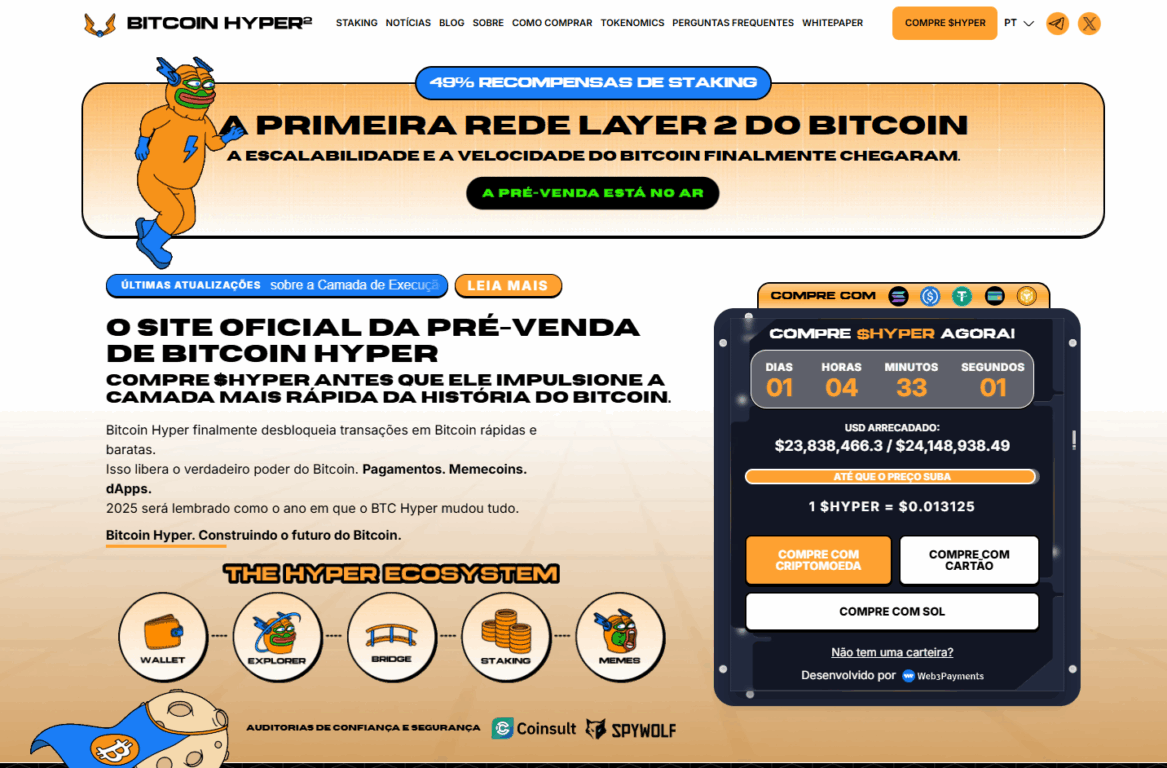 O Bitcoin Hyper (HYPER) é, hoje, o nome mais falado entre os insiders do mercado. E não é por acaso. Trata-se de um projeto de Layer-2 para o Bitcoin que utiliza arquitetura baseada na Solana, oferecendo velocidade absurda, contratos inteligentes e staking direto na rede BTC.